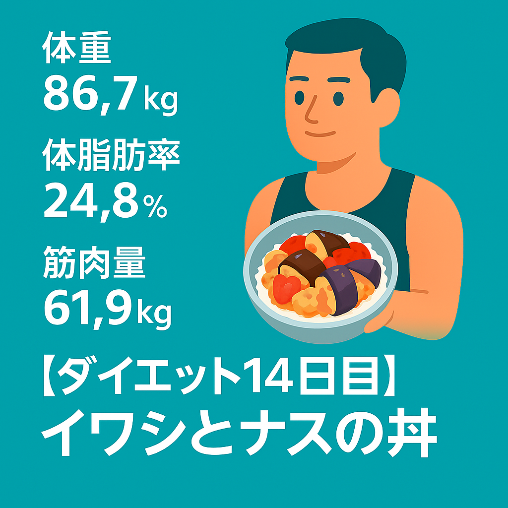 ナスとトマトのイワシ丼もその一つ。ダイエットを「苦行」ではなく「楽しみ」に変えながら、続けていけたらと思っています。