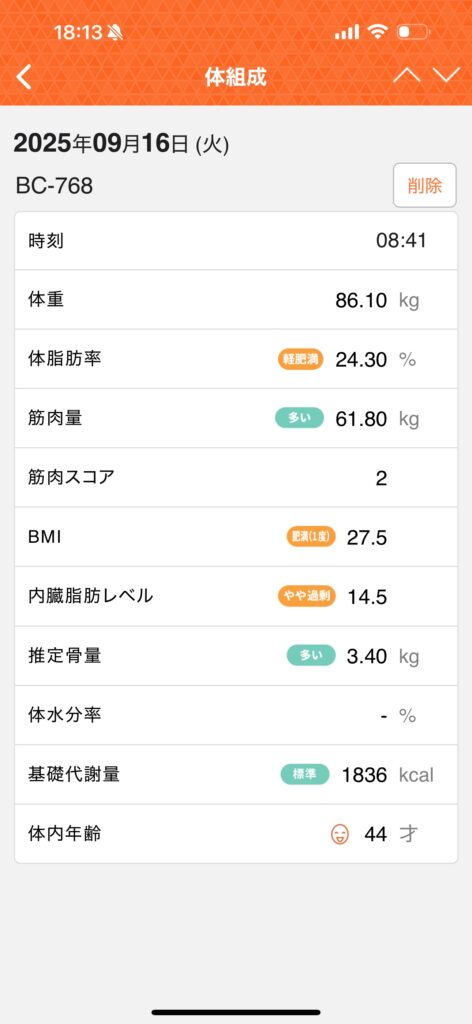 - 基礎代謝:1836kcal/推定骨量:3.40kg