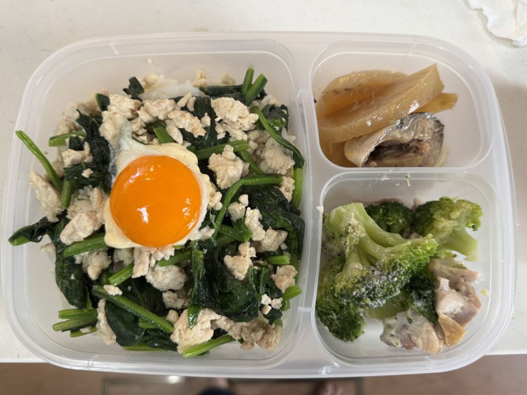 今日のお弁当は、鶏むね肉のポパイ丼。