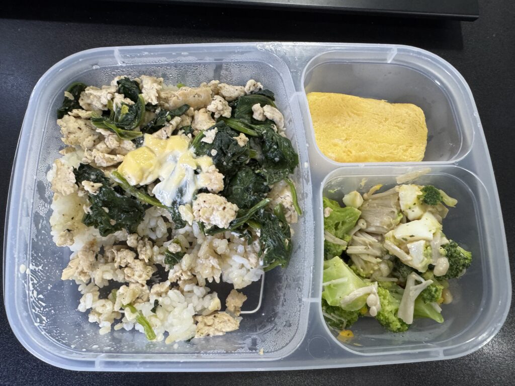 昼ごはん:ほうれん草×鶏そぼろ 卵とじ弁当