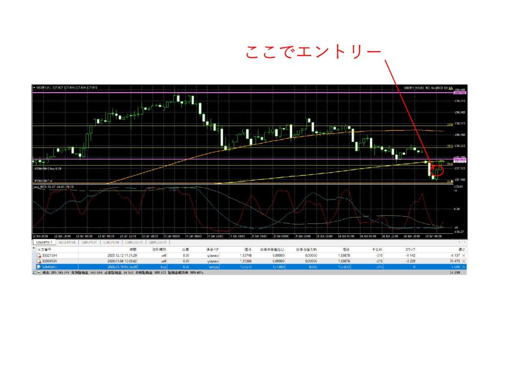 この条件が重なったところで、短期の反発狙いとして買いでエントリーしました。