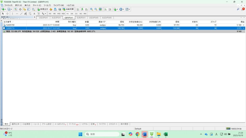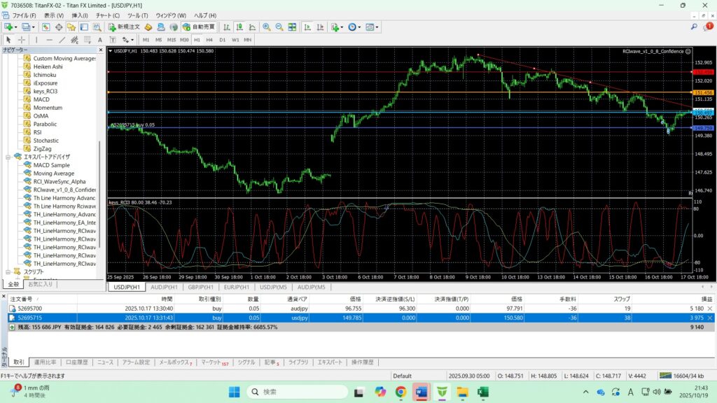 ただ、その後にRCIの反転シグナルを根拠に手動で入った押し目買いが成功し、