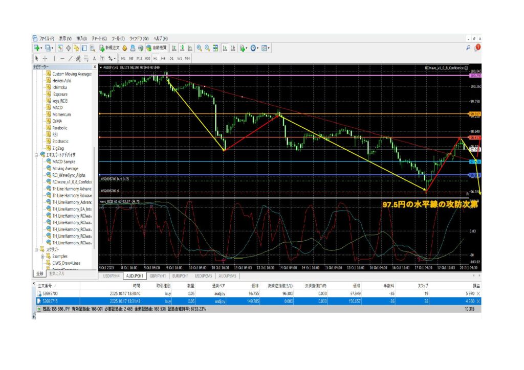 ドル円151.45、オージー円98.41の上抜けは上昇トレンド確定ラインとみており、